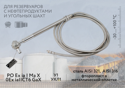 для измерения температуры в резервуарах с нефтепродуктами. Погружаемая часть герметична.