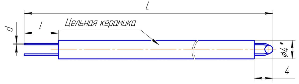 В исполнениях -50 и -51 длина керамики не более 1 000 мм. |