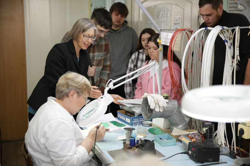 Завершили экскурсию ученики на монтаже и сборке, где ознакомились с процессом установки электронных компонентов на печатные платы и финальной сборки готовых датчиков температуры.
