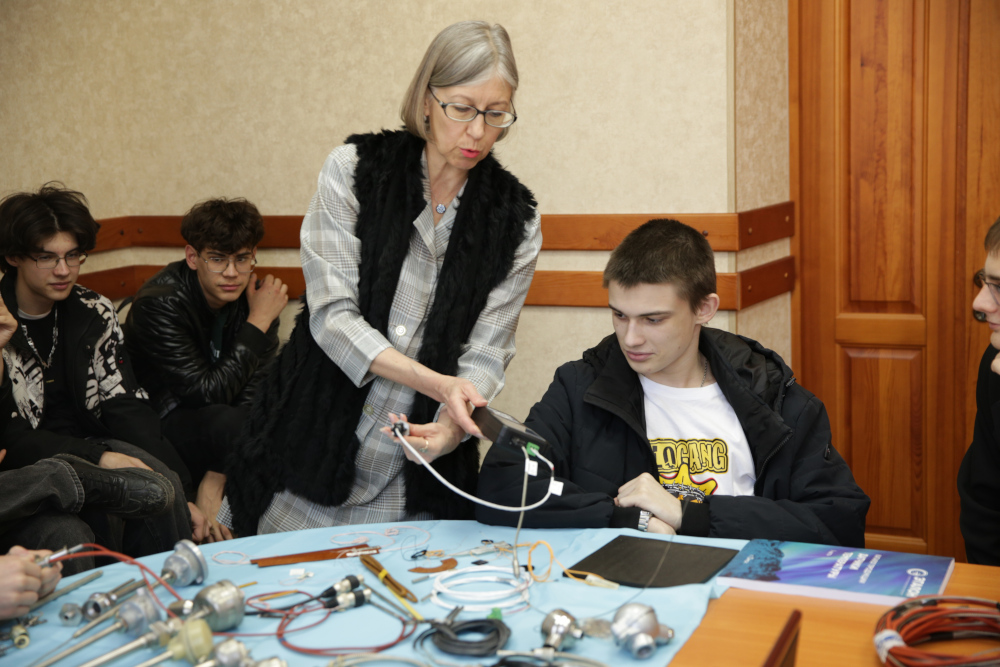 В лаборатории отдела главного метролога школьники познакомились с процессом поверки датчиков температуры. Здесь они увидели эталонный излучатель — модель абсолютно чёрного тела не ниже второго разряда. Ребята узнали, почему регулярная поверка средств измерения так важна для точности и надёжности приборов.